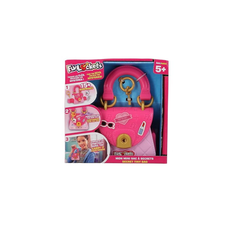 Discover this Funlockets Mini Secret Bag. Open the two drawers and find the jewels and stickers inside. With the last key, find out what’s inside the bag. Oh! A cute crystal charm and a ribbon to customize the mini bag! Use the stickers to decorate the bag. Lock all your secrets inside and hide your little treasures. Take them with you everywhere.