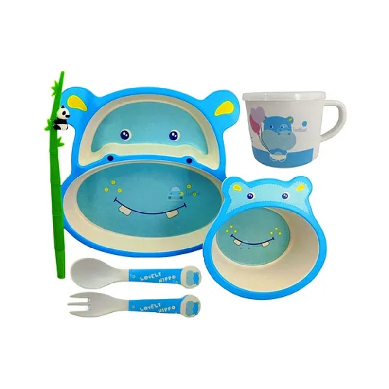 Made from 100% eco friendly bamboo fiberDishwasher safeLightweight and easy to cleanFun colorful design and ergonomic shapeSpecificationsBrand – FunBlastType – Dining SetAge – 3 Years+Material – Bamboo FibrePacking Dimensions – L 13 x B 5 x H 18 cmProduct DescriptionMade from Bamboo Fiber material, non-toxic, lightweight and easy to clean. Can be used as food supplement bowl, also can be used as training bowl when baby grow up Perfect gift for baby showers. Kids Feeding Set is specifically designed for children who are beginning to eat on their own. The plate at the bottom of the heightening design, good stability, placed on a smooth desktop will not easily fall.Items included in the Package1 large divided plate,1 bowl,1 cup, 1 spoon and 1 fork