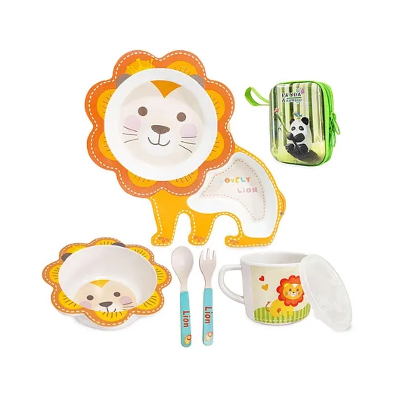FunBlast Bamboo Fibre Lion Theme Dining Set of 5- Multicolor