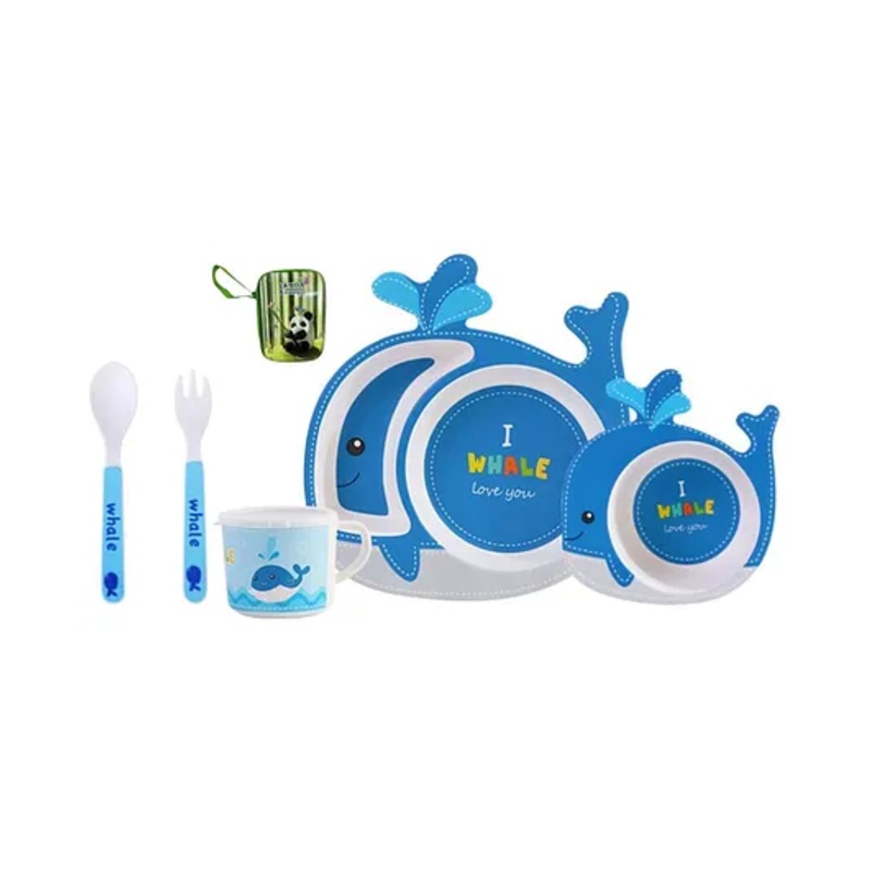 FunBlast Bamboo Fibre Whale Theme Dining Set of 5- Multicolor