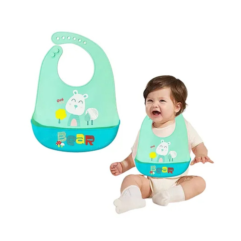 OCAL33215268137FunBlast Bear Print Silicone Baby Bib with Adjustable Strap for Feeding & Weaning