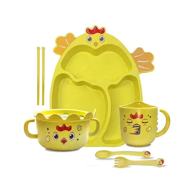 OCAL33215261298FunBlast Chicken Design Bamboo Fibre Dinnerware Set for Kids Yellow
