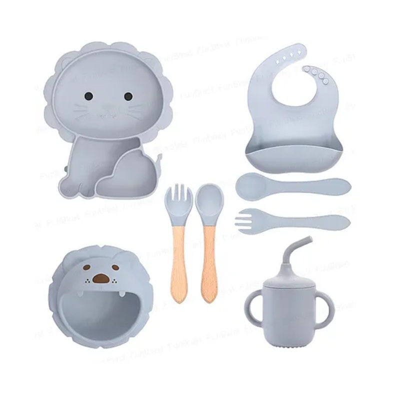 FunBlast Lion Theme Silicone Baby Tableware Feeding Set 8 Pcs Grey