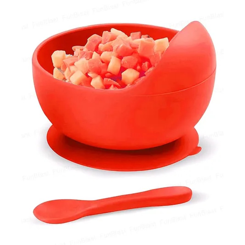 OCAL33215261730FunBlast Silicone Suction Bowl with Spoon Set for Toddlers Red