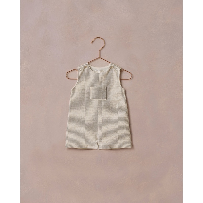 Our Georgie Romper is the sweetest look for your little gentleman. Designed with front pocket detail and buttons at the shoulders for easy changing.Featuing our 'sage stripe' print.Care: Machine wash cold on delicate. Lay flat to dry.Made of 100% cotton.