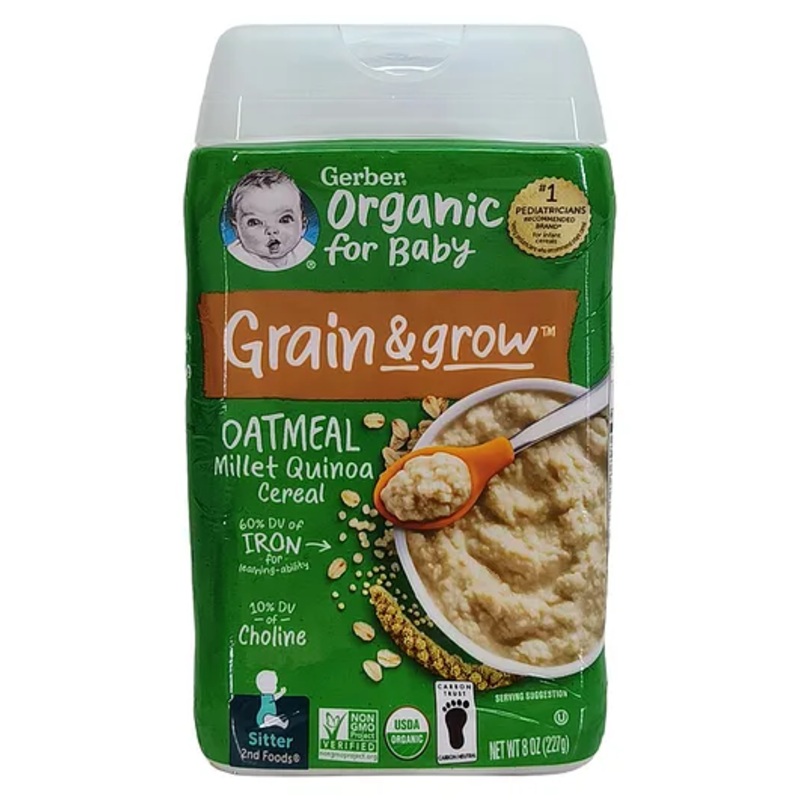 Iron helps support Learning AbilityGerber baby cereal introduces new tastes and provides essential nutritionGerber baby food made with multiple whole grains, including oatmeal, millet and quinoaMix with breastmilk or baby formula for easy preparationProvid
