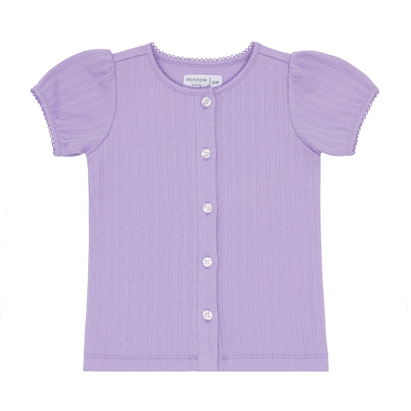 the perfectshirtfor girls of all ages. made from the softest pointelle with picot trim on the collar and sleeves, this style is a versatile piece for the new season. we love to pair it with our coordinating shorts or layered under an airy dress.100% cotton