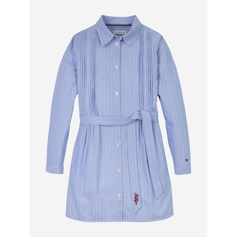 Introducing the Tommy Hilfiger Girls Striped Shirt Dress in Blue a quintessential piece for SS2025. Meticulously crafted, this dress encapsulates modern elegance and playful charm for young fashionistas. Key attributes include: