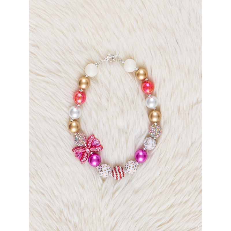 Be the first to review “Gold & Pearl Bow Charm Bubblegum Necklace”