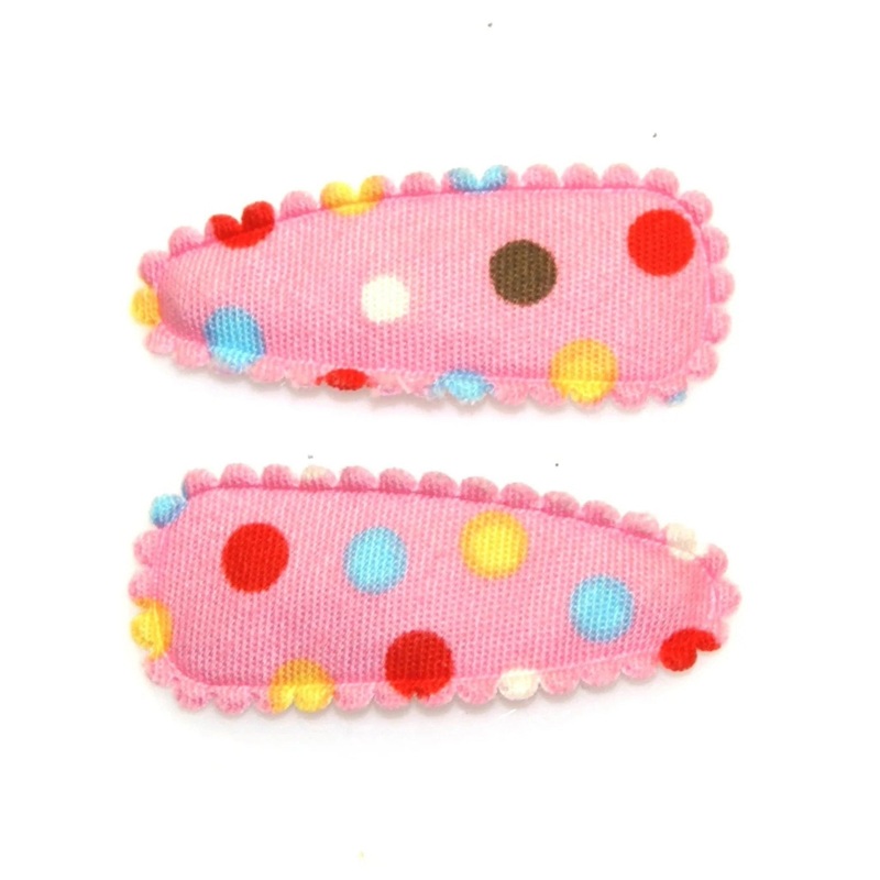 This pair of strong non-slip polka hair snaps measure approximately 5.5cm longCotton, Polyester, Metal