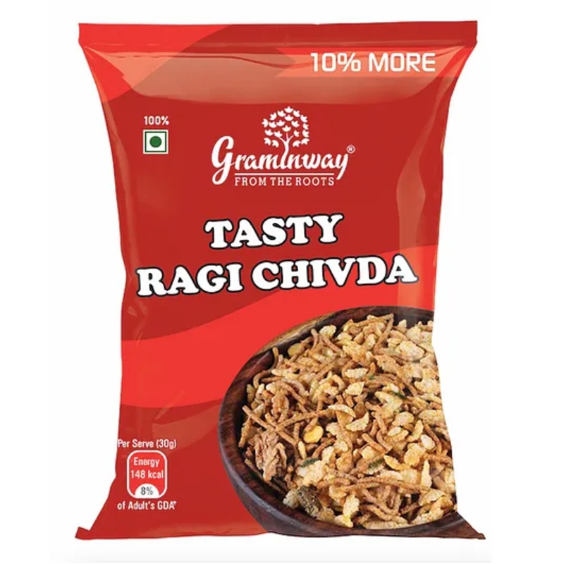 Tasty and Healthy SnacksCrunchy snacks with a mild flavour100% Vegetarian snacksIngredientsRagi, spiced sev and puffed riceSpecificationsBrand - GraminwayType - Kid's SnacksAge - 3 to 15 YearsQuantity - 100 gmProduct DescriptionGraminway Ragi chivda is a c