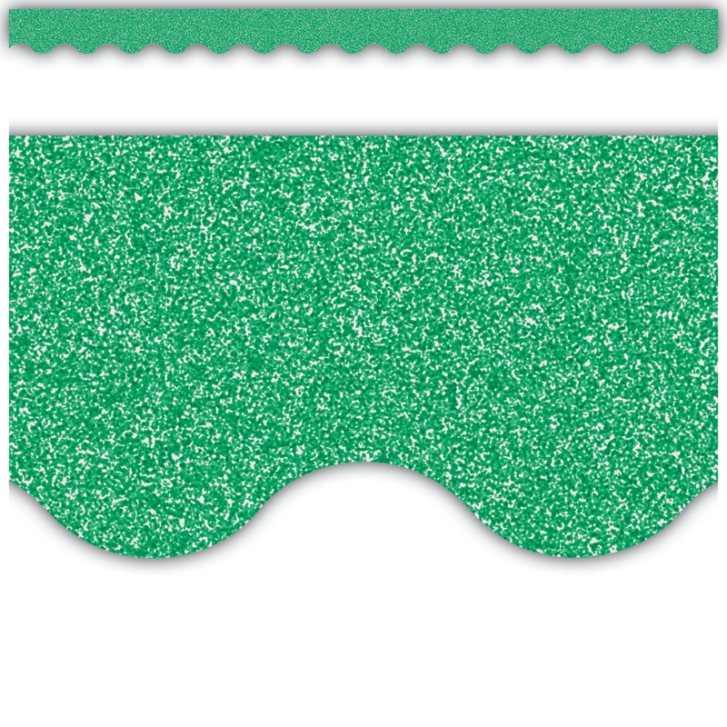 This Green Glitz Scalloped Border Trim is perfect for adding glimmer and shine to your bulletin board displays! These specially textured borders have a glittery look and feel but will not make a glittery mess in your classroom. Measures 2316'' x 35''. 12 p
