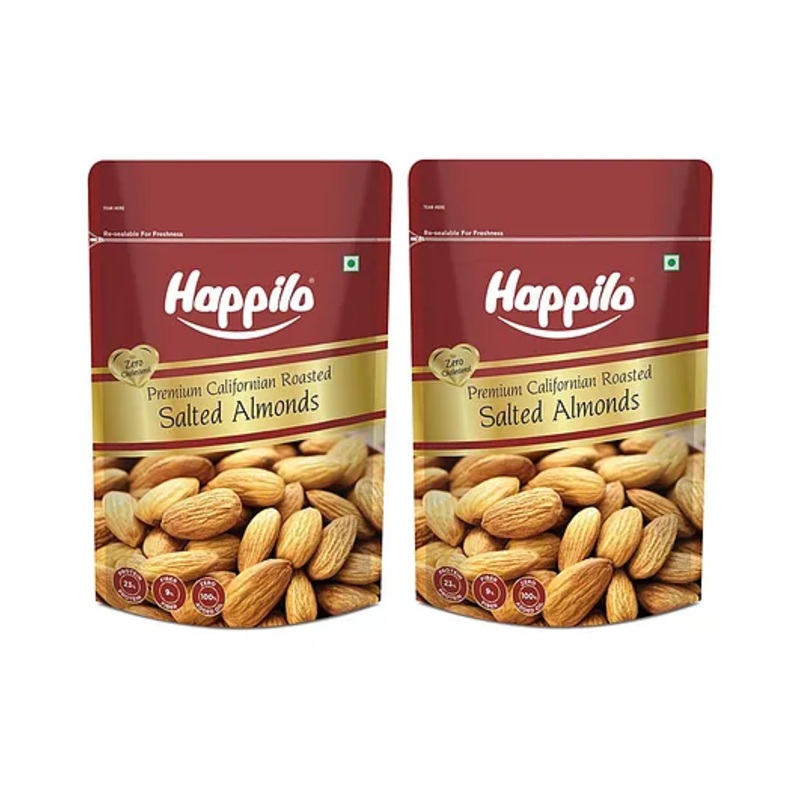 Happilo Roasted and Lightly Salted Premium Californian Almonds – 200g (Pack of 2)