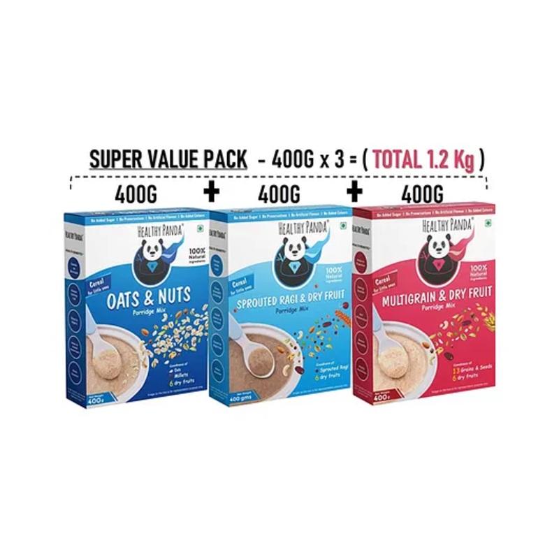 HEALTHY PANDA -Super saver Assorted Baby food Combo- Organic Sprouted Ragi & Dryfruit baby cereal (400G) + Oats & Nuts Baby Food (400g) + Multigrain dryfruit baby sathu maavu (400G)- (1200 g, Pack of 3, 6+ Months)