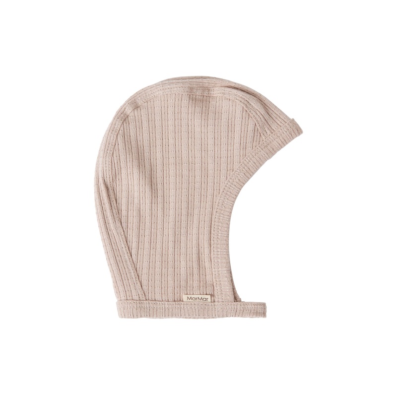 Nice little baby pointelle helmet that closes with a snap button in two lengths. The helmet is soft, stretchy and comfortable to wear.