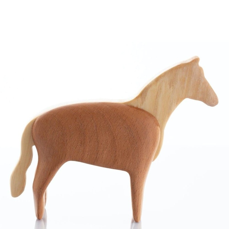 The Mercikos designer and craftsman finds his inspiration from the wooden toys of Scandinavian designers and Waldorf animals. He adds contrast with two different types of wood, preserving the natural color of the material and highlighting the forms of the animal with more rounded shapes. This eco-friendly wooden toy is crafted using sustainably harvested hardwood, organic olive oil, and beeswax. The lighter wood is white ash and darker wood is beech. This Waldorf toy is carefully crafted, rounded on all edges, and sanded silky smooth to appeal to your childs senses. Because of the natural material, each animal is unique and will vary slightly due to the color and grain of the wood.