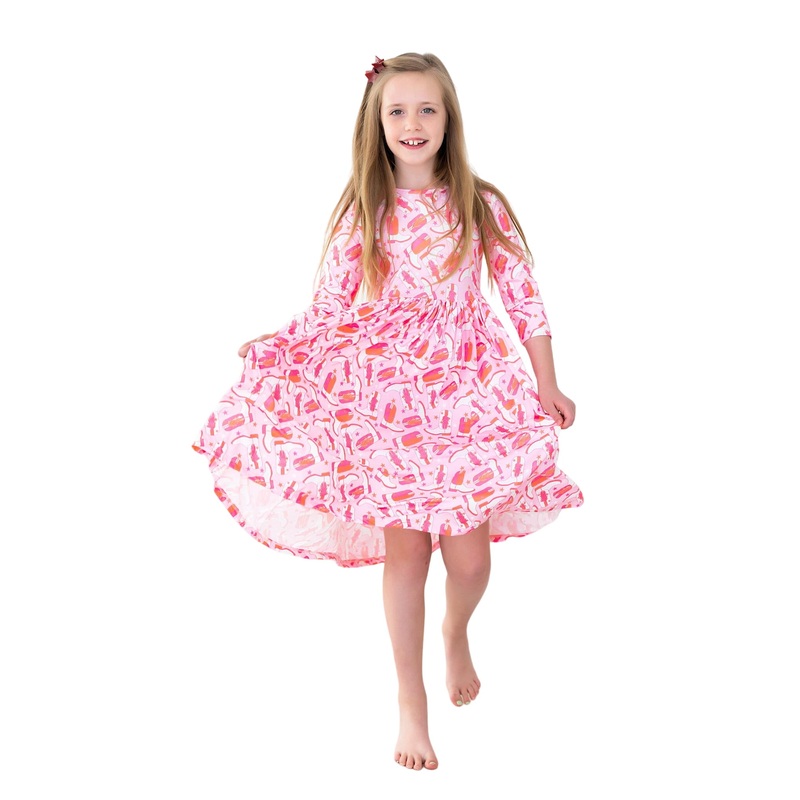 The perfect dress for school, special occasions, and everyday play! This dress is a staple in Milas wardrobe. Scoop back and ballet neckline make getting dressed a breeze. Full skirt makes twirling extra fun. Also available in a matching twirl bodysuit for