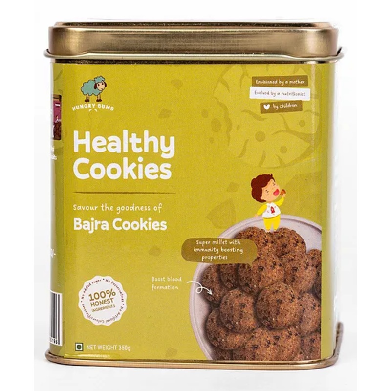 Specificationsbrand hungry bumstype organic cookiesage – 8 months +quantity – pack of 1 – 350gProduct DescriptionBajra is rich in antioxidants, minerals, proteinand viramins. It is super light and easy to digest. A perfect evening snack foryour little hungry tummies and grandparents who will enjoy eating these bajrabiscuits made with the goodness of natural bajra and jaggery (gur) with theirevening tea.