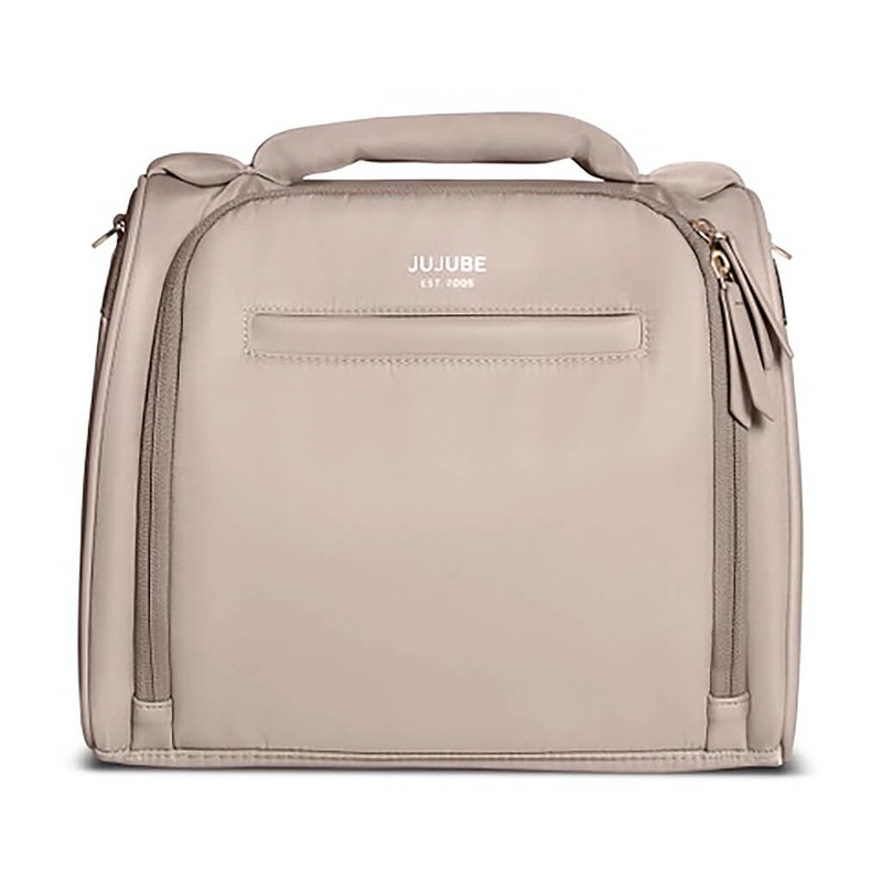 Keep your cool with the stylish Insulated Bottle Bag from JuJuBe. For easy use, this bag has an outside slip pocket, interior mesh pockets, and an elastic bottle strap, as well as a quick-grab top handle and an adjustable, detachable messenger strap. Doublingas a lunch bag, the bottle bagfeatures food-safe,easy-to-cleanPEVA lining, and accommodates up to three tall bottles with additional space for food to keep your little ones favorite snacks and drinks cool while youre out and about. Parent life is full of food messes, and the Insulated Bottle Bag is easy to clean. Simply toss it in the washing machine!