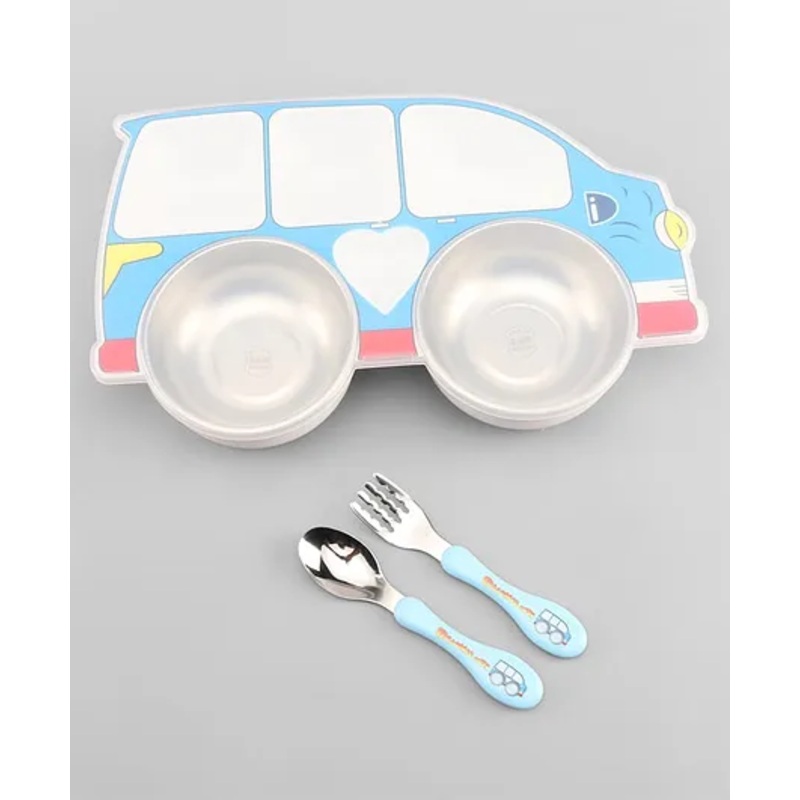 Jeep Shaped Plate with Lid & Spoon Fork Set -Blue