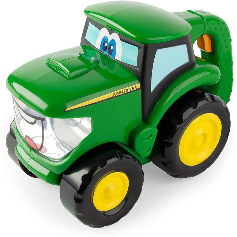 The Johnny Tractor Flashlight is a 2-in-1 design that lets little ones roll Johnny Tractor along for on-the-floor play, but also lights up when the sun goes down. Simply press the button on the handle and Johnny is ready to light the way to your next farm