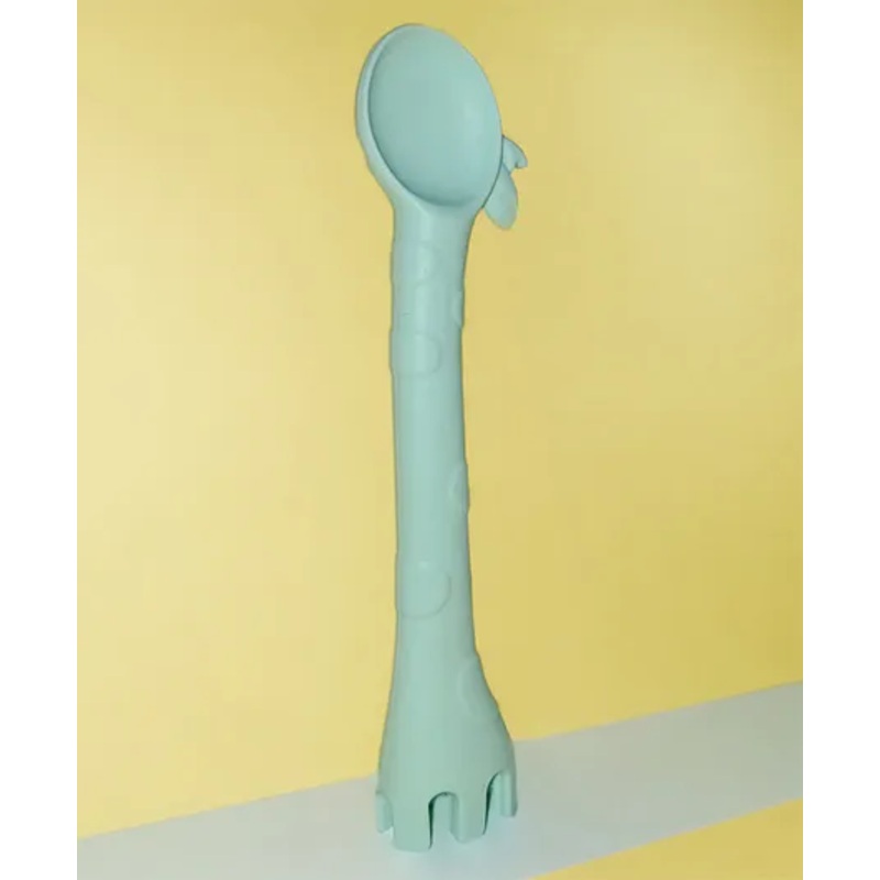 Joy Buzz Baby Training 2 In 1 Silicone Giraffe Shape Spoon and Fork – Green