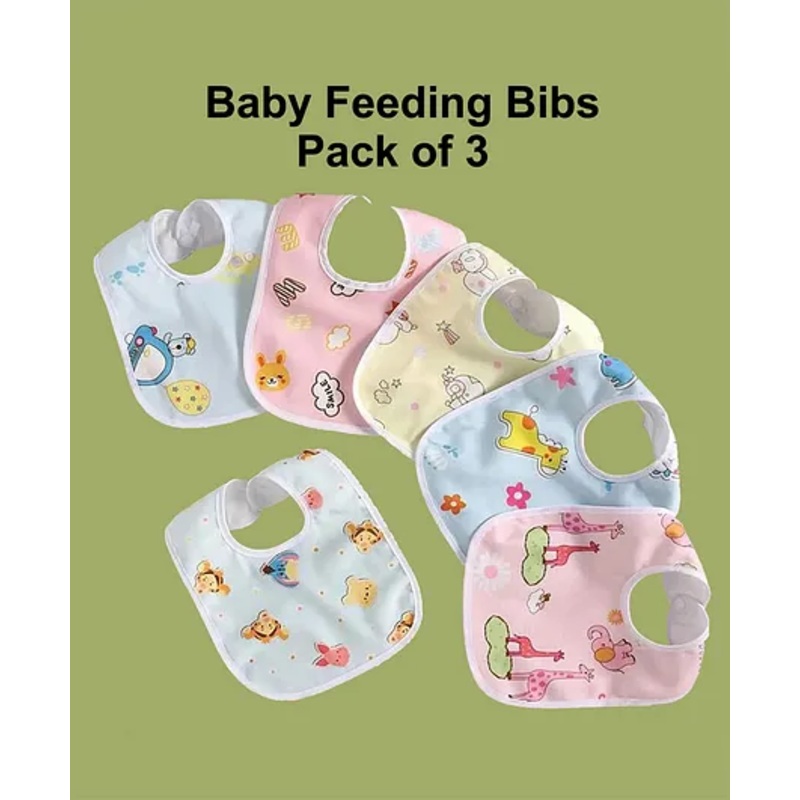 OCAL33215267302JOY BUZZ joy buzz Waterproof Feeding Bibs with Snap Button Closure Animal Print Pack of 3 -Multicolor