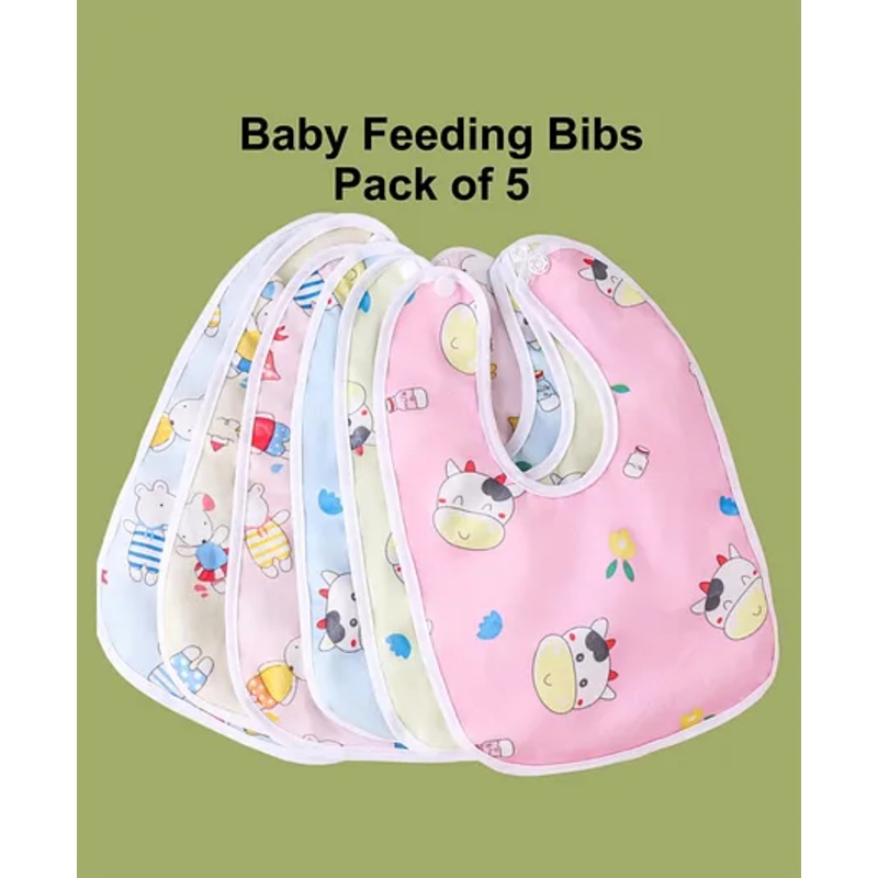OCAL33215267686JOY BUZZ joy buzz Waterproof Feeding Bibs with Snap Button Closure Animal Print Pack of 5 – Multicolor