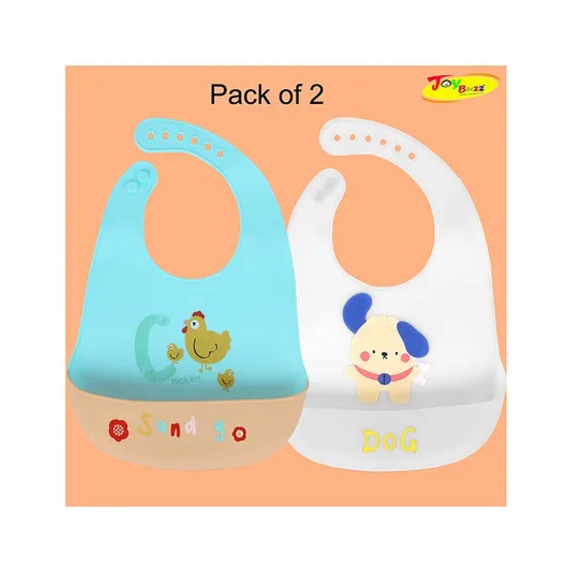Joy Buzz Waterproof Silicone Feeding Bib With Adjustable Strap Pack Of 2 – Blue,White