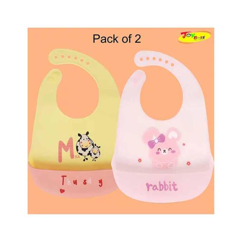 Joy Buzz Waterproof Silicone Feeding Bib With Adjustable Strap Pack Of 2 – Yellow,Pink