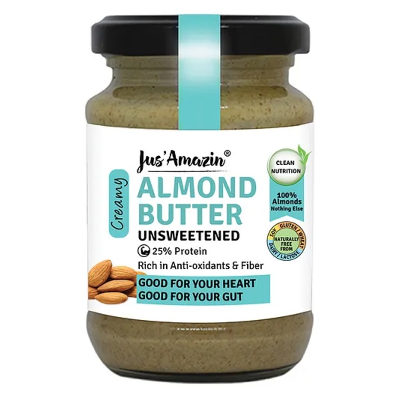 • No artificial preservatives, no refined sugar, no hydrogenated fatSpecification Brand – Jus’Amazin Type – Cashew Butter Punchy Pepper Age – 2 Years + Made of – Glass Dimension – 5.5 x 5.5 x 92 cm Product Dimension after packing – 10 x 10 x 10 cm Weight after packing – 125 gms Items included in the package 1 Jar of Nut ButterThis delicious & nutritious protein packed almond spread \ butter (with 25% protein), is made from premium almonds and is ideal for those on a high-protein diet. Loaded with essential micronutrients (Vit B2, Calcium, Iron), it is high in dietary fibre and is diabetes friendly (low in carbs and has no sweeteners). Best enjoyed on toast, in a smoothie or mixed in with a bowl of oatmeal. Made without any hydrogenated fats, artificial preservatives and chemicals, this healthy butter has zero cholesterol and is dairy free, soy free, peanut free, gluten free and is suitable for vegans. Storage information Store in cool dry place from sunlight and heat. Refrigerate on opening Consume within 60 days of opening Oil separation is a natural process, stir before consumption Ingredients Almonds (100%) Who is it for?