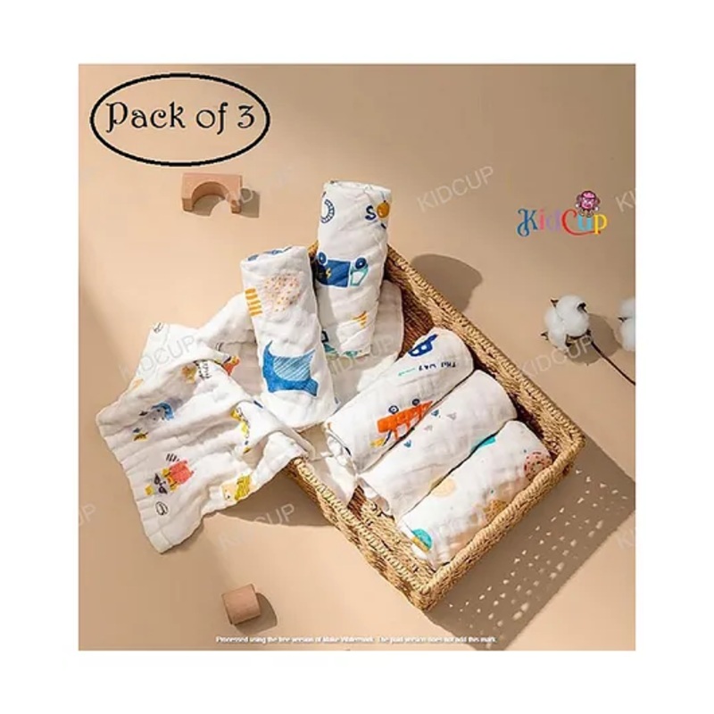 SpecificationsBrand -Kidcup Material 100% CottonType Baby NapkinAge Free SizeProduct Dimensions L 30 x B 30 cm Product Description Kidcup Pack of 3baby napkins, six-layer Material 100% cotton Soft and breathable, natural andhealthy, perfect for little babies. Extra soft and durable napkin for New-born,Infants and Toddlers Baby Shower napkin gift for every moms washinginstructions Machine washable and Hand Washing Natural muslin cotton napkinsare super for baby skin, baby face and more. Package 5 * Baby Napkin Features& benefits of using muslin squares The baby Napkin is a versatile companionthat can be taken anywhere and fulfils many practical functions in everydaylife They are absorbent and can soak up spills and messes. They are breathableand can help to keep. Baby cool. They are machine-washable and easy to carefor. As protection against wind and weather in the open air (for exampleNapkin, underlay or sunscreen in the stroller)As Napkin in cot, baby seat, playpenor cradle As a warming pad for wrapping As a consolation dispenser and familiaritem that has a calming and relaxing effect.Items Included in Package 3 Baby Napkin