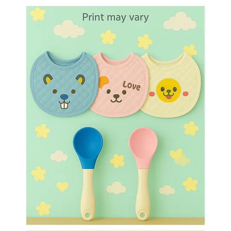 Complete Feeding & Protection Set This pack combines two essential silicone feeding spoons with three absorbent bibs, offering a comprehensive solution for introducing solids and managing mealtime messes.Soft & Safe Silicone Spoons The spoons feature soft,