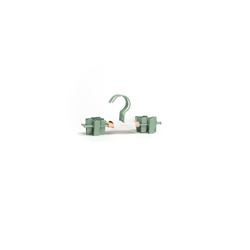 Pack of five Features a smooth matte powder-coated finish Includes a wooden detail Equipped with two clips for secure holding Suitable for tiny baby-size clothes up to age ten size Fits perfectly inside The Skinny or The Twinny Height: 4.7" Width: 9.8"