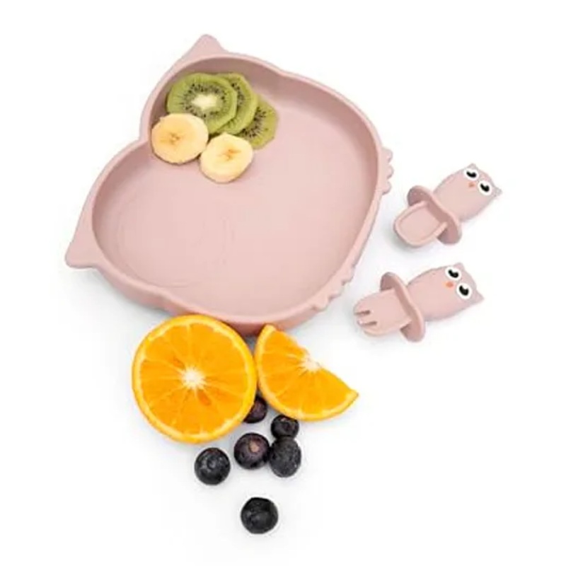 Fun & Functional Design Adorable owl-shaped plate with divided sections for fun and balanced mealsComplete Feeding Set Includes a silicone plate, spoon, and forkSafe for Babies Made from BPA-free, food-grade silicone, soft and gentle for young eatersPromot