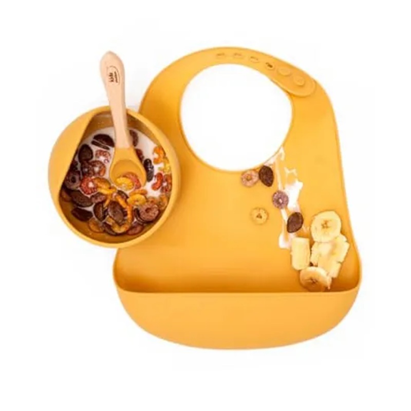 Complete Feeding Set Includes a suction bowl, soft spoon, and waterproof bibSafe & Non-Toxic Made from BPA-free, food-grade siliconeStrong Suction Bowl Stays in place to prevent spills and encourage self-feedingEasy to Clean Dishwasher and microwave safe for hassle-free useMess-Free Bib Design Adjustable bib with deep pocket to catch food and keep baby clean
