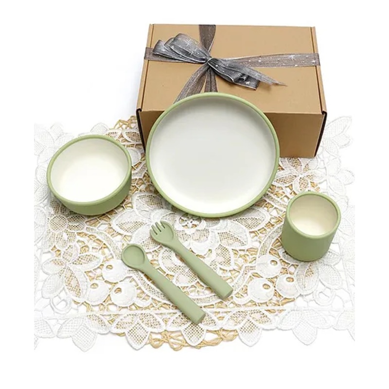 Made from 100% food-grade silicone, the Kids Station Feeding Set is non-toxic, BPA-free, phthalate-free, lead-free, paint-free, and completely safe for babies and toddlers. Designed to give parents peace of mind with every bite.This complete 5-piece set includes a suction plate, feeding bowl, drinking cup, silicone spoon, and silicone forkeverything you need to support your child’s feeding journey from early solids to toddler meals.Features strong suction bases on the plate and bowl to help prevent tipping and spilling during meals. Promotes self-feeding and builds independence, while making mealtime mess-free.The silicone material is non-stick, odorless, stain-resistant, and safe for use in the microwave, dishwasher, oven, and freezer. Cleaning is simplejust rinse or place in the dishwasher.The set’s playful design and toddler-friendly shapes make mealtime fun, while supporting baby-led weaning and fine motor development.Beautifully packaged, the set makes a wonderful gift for baby showers, first birthdays, Diwali, Christmas, Children’s Day, or Mother’s Day.SpecificationsBrand Kids StationProduct Dimensions L25 x B20 x H5Product Weight 200 GramsMaterial 100% Food-Grade SiliconeColor GreenMicrowave Safe YesDishwasher Safe YesProduct DescriptionSupport your baby’s self-feeding journey with the Kids Station Essential Feeding Set (5pcs)a complete tableware kit for infants and toddlers. Whether you’re starting solids or transitioning to independent meals, this set has everything you need to make mealtime smooth, safe, and stress-free. The suction base keeps dishes in place, the ergonomic utensils support grip development, and the high-quality silicone ensures safety, durability, and easy cleaning.Items Included in the Package1 x Non-Slip Plate1 x Bowl1 x Drinking Cup1 x Silicone Spoon1 x Silicone Fork