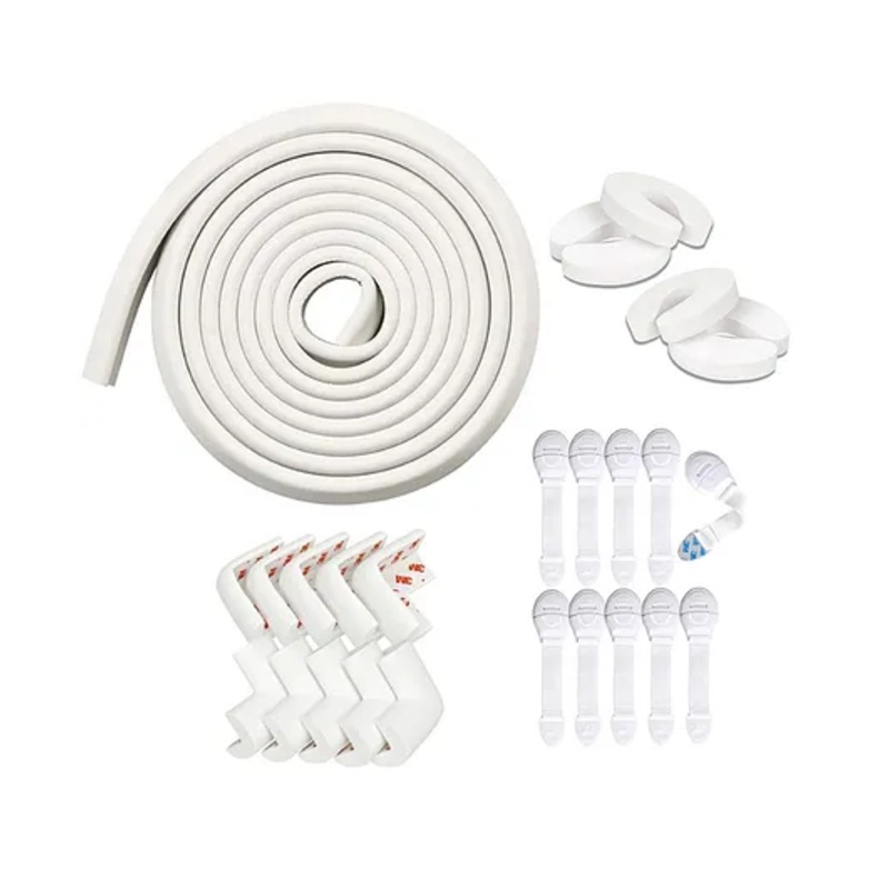 Baby Proofing Products kit with Edge Protector, Corner Guards, Safety Locks and Door Guards.Soft, high-density, premium cushion Safety Edge guards protect babies from the hard and sharp edge.Protect your child from sharp and dangerous corners with impact-a