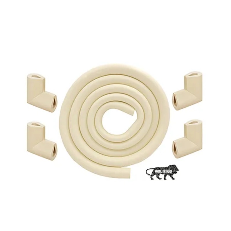 Sharp Corners, Safely Covered Protect your baby from sharp edges on furniture like beds, tables, and chairs. Kids Station Edge Protector is designed to help your child explore safely during their early walking years by cushioning potential danger zones in your home.Soft Cushion-Like Foam Made from high-density nitrile rubber foam, this baby-proofing edge guard absorbs impact and springs back to shape. It’s strong enough to prevent injuries but soft enough to protect your baby from bumps and bruises.Premium 3M Adhesive for Strong Grip Equipped with high-quality 3M double-sided tape, the edge protector adheres firmly to glass, wood, metal, or marble surfaces. It ensures a long-lasting hold and resists being pulled off by curious hands.Safe, BPA-Free & Non-Toxic This edge guard is crafted using baby-safe materials and contains no BPA, toxic flame retardants, or harmful chemicalsmaking it both safe and environmentally friendly.Parent-Designed, Baby-Approved Created by a team of parents who prioritize child safety, Kids Station offers 100% satisfaction. If you’re not happy for any reason, we’re committed to making it right.SpecificationsBrand Kids StationMaterial Nitrile FoamColor BeigeType- Edge ProtectorAge – 0 months+Product Dimensions 200L x 1B x 4H cmProduct DescriptionEnsure complete protection for your little one with this Edge & Corner Guard Combo Pack of dimensions200L x 1B x 4H cm. Featuring a 2-meter U-Shape edge protector and 4 matching corner guards, this set is ideal for cushioning sharp edges and corners around your home. Made from child-safe, flexible rubber, it helps reduce the risk of injuries from accidental bumps. The beige color blends well with most furniture, and the Made in India quality ensures safety and durability for everyday use.Items Included in the Package1 x Edge Guard StripPack of 4 Corner Guards