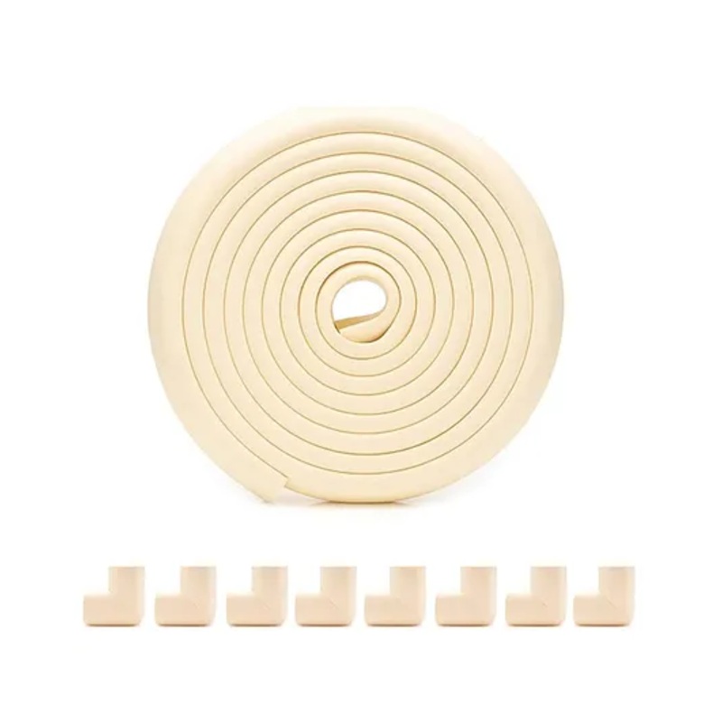 Kids Station Edge & Corner Guards Combo for Baby Safety 5m L-Shape Edge Protector + 8 Corner Guards BPA Free (Beige)