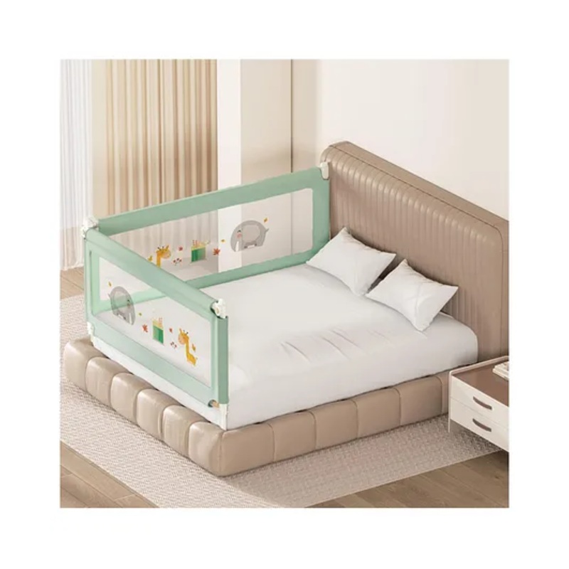 WARNING Please measure your mattress carefully before placing your order. For assistance, contact our customer care at +91 9810747689 to avoid installation issues or unnecessary returns.KINDLY NOTE Individual bedrails are designed to measure approx. 147 cm \ 177 cm \ 190 cm \ 197 cm to accommodate bed lengths of 150 cm \ 180 cm \ 192cm \ 200 cm, accounting for variations in construction and design.Maximum Safety & Comfort This extra-long and tall bedrail guard (6.3ft \ 192cm in length, extendable up to 80cm in height) ensures your baby stays safe while sleeping. It prevents accidental falls and stops your little one from climbing out of bed during sleep.Convenient One-Touch Foldable Design Features a child-proof side button for easy folding of one or both sides independently. Offers hassle-free access when you need to hold your baby, make the bed, or sit comfortably.Premium Quality & Breathable Fabric Made from soft yet durable material with breathable mesh for visibility and airflow. The reinforced rods are covered with soft foam for added safety. Removable and washable cover for easy maintenance.Adjustable Height for Versatile Fit Easily adjust the bedrail height to suit different mattress levels and thicknesses. Ensures a snug and safe fit across most king-size bed types.Wide Compatibility Designed to fit most standard king-size beds and various mattress styles. Ideal for home use, sleepovers, or travel.Lightweight & Portable The foldable structure makes it easy to assemble, detach, carry, and storeperfect for families on the go.Transparent Mesh Panel Allows you to keep an eye on your child without disturbing their sleep. Offers both comfort and peace of mind.DISCLAIMER Product images are digitally rendered. Actual color may slightly vary due to lighting or display settings. Fabric includes colorful printed woven designs as shown.SpecificationsBrand Kids StationMaterial Alloy SteelDimensions L 192 x B 180 cm (6.3ft x 6ft)Color GreenStyle 2 Side, BasicProduct DescriptionEnsure your baby’s sleep safety with the Kids Station Bed Rail Guard, specially designed for king-size beds. With its extra-long 6.3ft length and adjustable height up to 80 cm, it offers complete protection against falls and helps transition your baby to a regular bed. The foldable rail with child-lock mechanism provides convenient access for parents, while the soft mesh fabric allows full visibility. Built from premium materials, it’s durable, easy to clean, and simple to install. Perfect for modern homes looking for safe and space-saving baby proofing solutions.Items Included in the Package2 Bed Rail Guard (Grey, 6.3ft x 6ft)