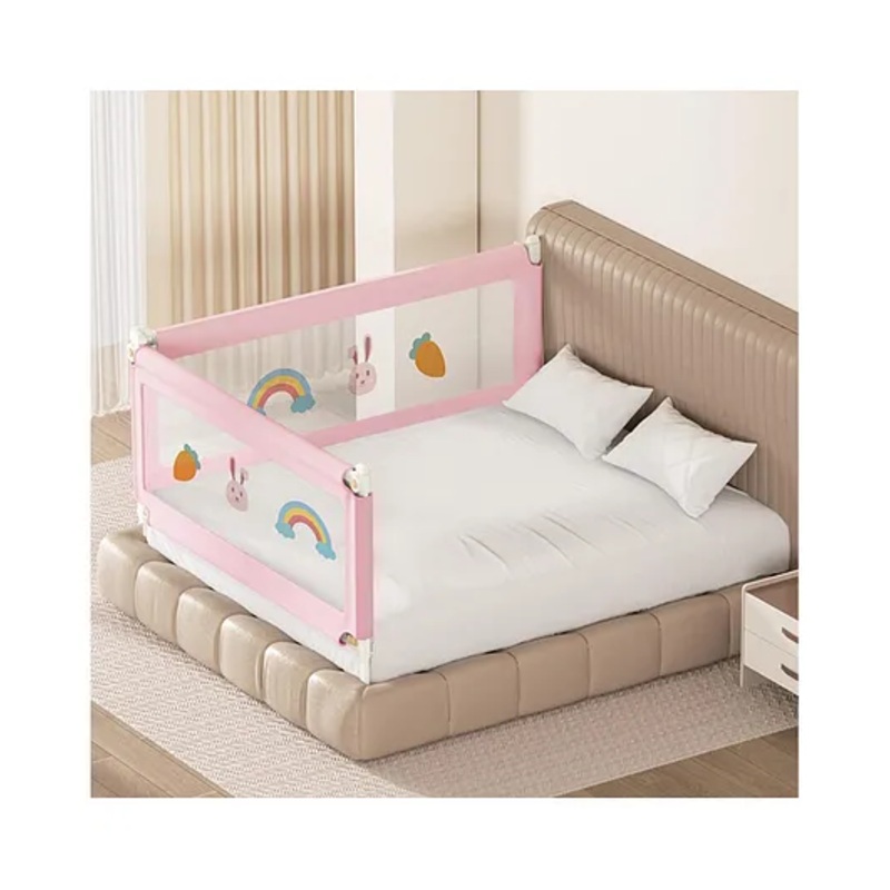 WARNING Please measure your mattress carefully before placing your order. For assistance, contact our customer care at +91 9810747689 to avoid installation issues or unnecessary returns.KINDLY NOTE Individual bedrails are designed to measure approx. 147 cm \ 177 cm \ 197 cm to accommodate bed lengths of 150 cm \ 180 cm \ 200 cm, accounting for variations in construction and design.Maximum Safety & Comfort This extra-long and tall bedrail guard (6ft \ 180cm in length, extendable up to 80cm in height) ensures your baby stays safe while sleeping. It prevents accidental falls and stops your little one from climbing out of bed during sleep.Convenient One-Touch Foldable Design Features a child-proof side button for easy folding of one or both sides independently. Offers hassle-free access when you need to hold your baby, make the bed, or sit comfortably.Premium Quality & Breathable Fabric Made from soft yet durable material with breathable mesh for visibility and airflow. The reinforced rods are covered with soft foam for added safety. Removable and washable cover for easy maintenance.Adjustable Height for Versatile Fit Easily adjust the bedrail height to suit different mattress levels and thicknesses. Ensures a snug and safe fit across most king-size bed types.Wide Compatibility Designed to fit most standard king-size beds and various mattress styles. Ideal for home use, sleepovers, or travel.Lightweight & Portable The foldable structure makes it easy to assemble, detach, carry, and storeperfect for families on the go.Transparent Mesh Panel Allows you to keep an eye on your child without disturbing their sleep. Offers both comfort and peace of mind.DISCLAIMER Product images are digitally rendered. Actual color may slightly vary due to lighting or display settings. Fabric includes colorful printed woven designs as shown.SpecificationsBrand Kids StationMaterial Alloy SteelDimensions 180 x 180 cm (6ft x 6ft)Height – 80cm or 2.6ftColor PinkStyle 2 Side, BasicProduct DescriptionEnsure your baby’s sleep safety with the Kids Station Bed Rail Guard, specially designed for king-size beds. With its extra-long 6ft length and adjustable height up to 80 cm, it offers complete protection against falls and helps transition your baby to a regular bed. The foldable rail with child-lock mechanism provides convenient access for parents, while the soft mesh fabric allows full visibility. Built from premium materials, it’s durable, easy to clean, and simple to install. Perfect for modern homes looking for safe and space-saving baby proofing solutions.Items Included in the Package2 Bed Rail Guard (Pink, 6ft)