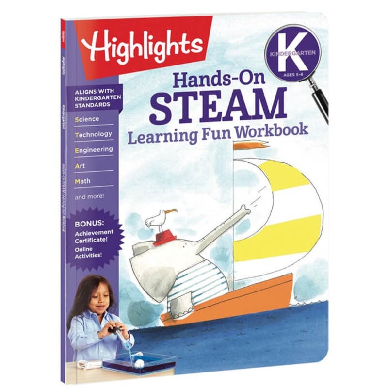 The hands-on experiments, projects and activities in thisKindergarten Hands-On STEAM Learning Fun Workbookget kids ages 5 to 6 to think critically and creatively while having fun. STEAM (Science, Technology, Engineering, Art and Math) learning encourages kids to experiment and engineer, to make mistakes and learn from them, and to be problem-solvers and critical thinkers now and for life.