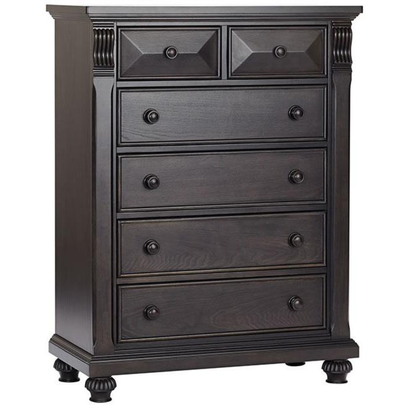 This six-drawer chest is exceptionally polished, and perfect for the babys room and beyond. Each two-handled drawer offers premium storage for clothing, accessories, and all your childs odds and ends. Soft-close drawers.