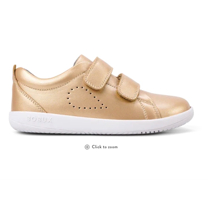 This street-styled trainer is perfect for everyday wear. Premium leather in a striking gold finish is contrasted with a speckled sole, while a double strap closure provides an easy, secure fit. A cotton knit lining and padded heel make the Grass Court as comfortable as it is cool. Suitable for active kids, this style fits true to size.