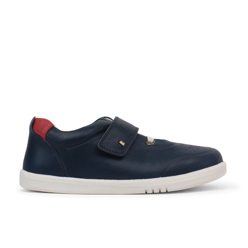 A retro member of the Bobux collection, this vintage-styled trainer in two-tone red and navy colourway is perfect for a preppy look. The Ryder uses contrasting leather, faux laces and embossed detail for styling thats sporty and timeless. Natural, flexible and breathable materials keep kids’ feet healthy and comfortable throughout the year. Suitable for active kids, this style fits true to size.
