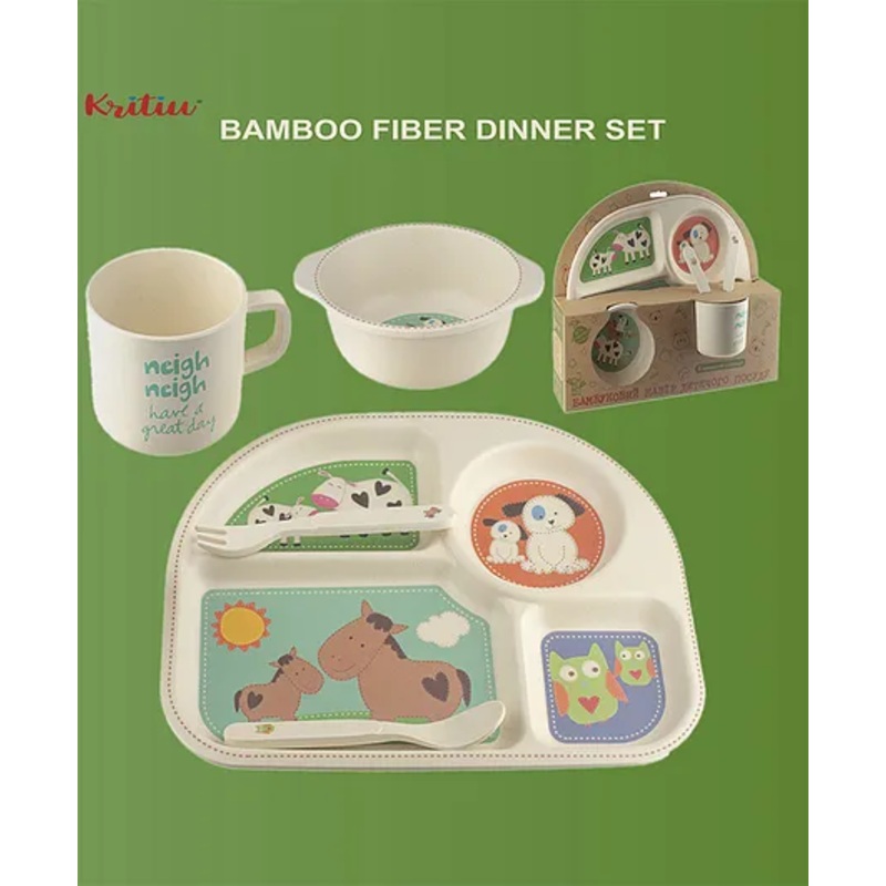 Complete 5-Piece Set Includes a plate, bowl, cup, fork, and spoon, providing all the essentials for your child's meals.Adorable Print Features a playful design in bright yellow, making mealtime enjoyable for kids.BPA-Free Material Made from safe, non-toxic