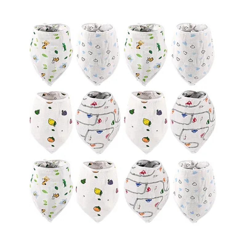 • 12 Pcs Baby Bibs Cloth\Feeding Hanky\Food Towel | Color White