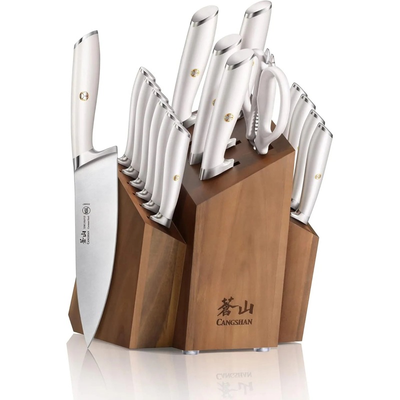 L1 Series 17-Piece German Steel Forged Knife Block Set – White