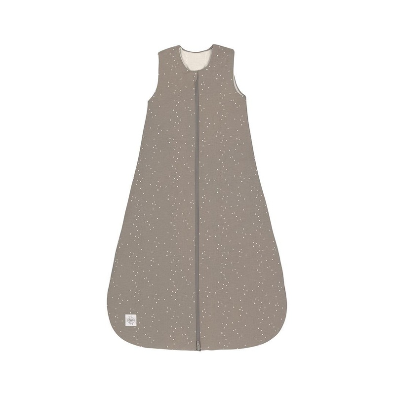 The Lassig Interlock Sleeping Bag in Sprinkle Taupe has a TOG rating of 2.5, which makes it suitable all year round. It offers ample legroom for romping and ensures easy dressing and undressing. This cozy sleeping bag is equipped with a long, full-length zipper, which also makes it easier to change the little ones nappies.